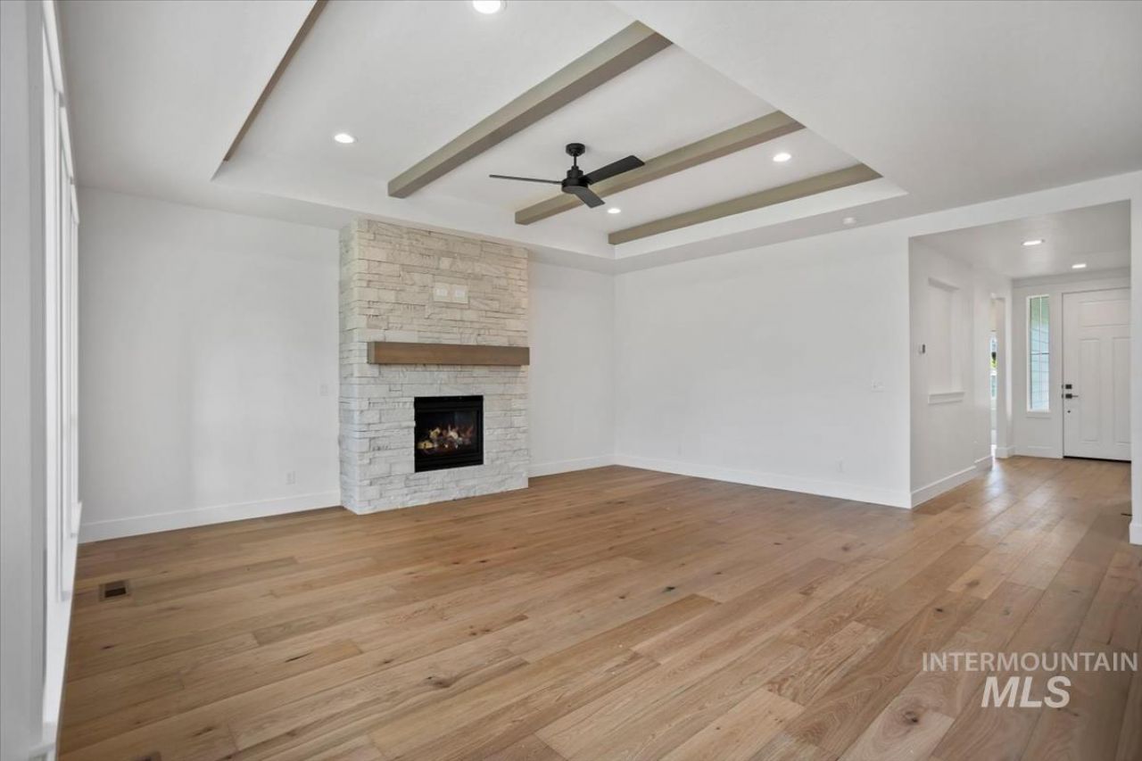 Welcome to the Davenport by Tresidio Homes in Lugarno Terra! Situated on a premium corner lot, experience a warm welcoming entry with a sunlight drenched great room and large windows, anchored by a floor-to-ceiling stone fireplace and tray ceilings. The kitchen is highlighted by SS appliances, soft close premium cabinets, quartz countertops, and ample storage with your large walk in pantry. The primary suite is a true retreat with a spa-inspired bath featuring a free-standing soaking tub. 2 additional bedrooms and office/flex room for versatility. A rare 4-car garage provides exceptional space for vehicles, storage, or hobbies. Lugarno Terra features a community pool, parks, pickleball courts and and walking paths. Just minutes from downtown Kuna restaurants, shopping, schools and plenty of outdoor recreation. Dont miss this chance to love where you live! PHOTOS SIMILAR, home will be completed in late April 2026.